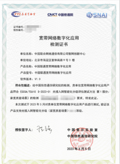 国内运营商首个!中国联通宽带网络数字化应用产品通过自智网络智能化分级认证