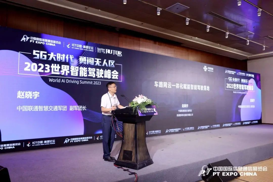在峰会上,中国联通智慧交通军团副团长赵晓宇还受邀发表《车路网云一体化赋能智能驾驶落地》主题演讲。