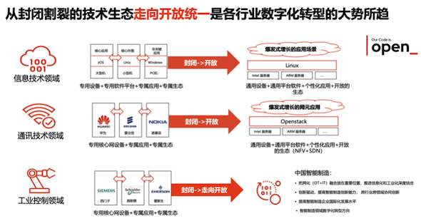 “最早30年前,当时谈大型机、小型机,10年前开始谈云、大数据、移动应用、区块链等,这些东西的创新都有一个共通点,就是它都是来自于开源。”曹衡康表示过去很多东西喜欢称之为软件定义,现在改为由开源定义一切,原因正在于它的文化。