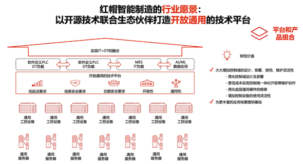 “在开源环境下。一般的PC服务器就够用了,PC服务器一台设备几乎等于工业电脑的1/3的成本。所以我们的客户,一家全球数一数二的大的汽车制造业公司在中国选择使用红帽的东西去做自动生产管理,成本节省可达70%。”曹衡康表示。