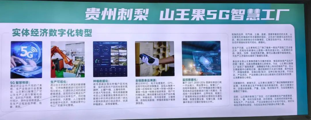 贵州联通助力山王果建设“5G+智慧工厂”,并贯彻落实加快数字化发展,推进产业数字化转型,目标投资建设国内一流、业内领先的“绿色、智能、高效”智慧工厂。