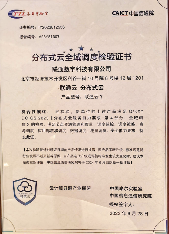 凭借强大的能力和资源优势,联通云分别通过了分布式云基础设施和分布式云全域调度最新评估,树立了“安全数智云”的品牌形象。