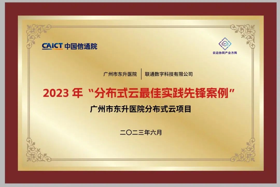 联通数字科技有限公司联合广州市东升医院申报的“广州市东升医院分布式云项目”,荣获2023年“分布式云最佳实践先锋案例”。联通数字科技有限公司通过采用场景云5G边缘云架构,实现了医疗中心云与医院边缘云的场景联动。医院边缘云满足了医院对数据进行本地计算存储的需求,医疗中心云则为医院系统提供了安全可靠的互联网流量出口,满足了安全防护、数据备份需求,通过提供完整敏捷的运维体系,有效降低了医院的IT门槛,减轻了医院人力负荷。