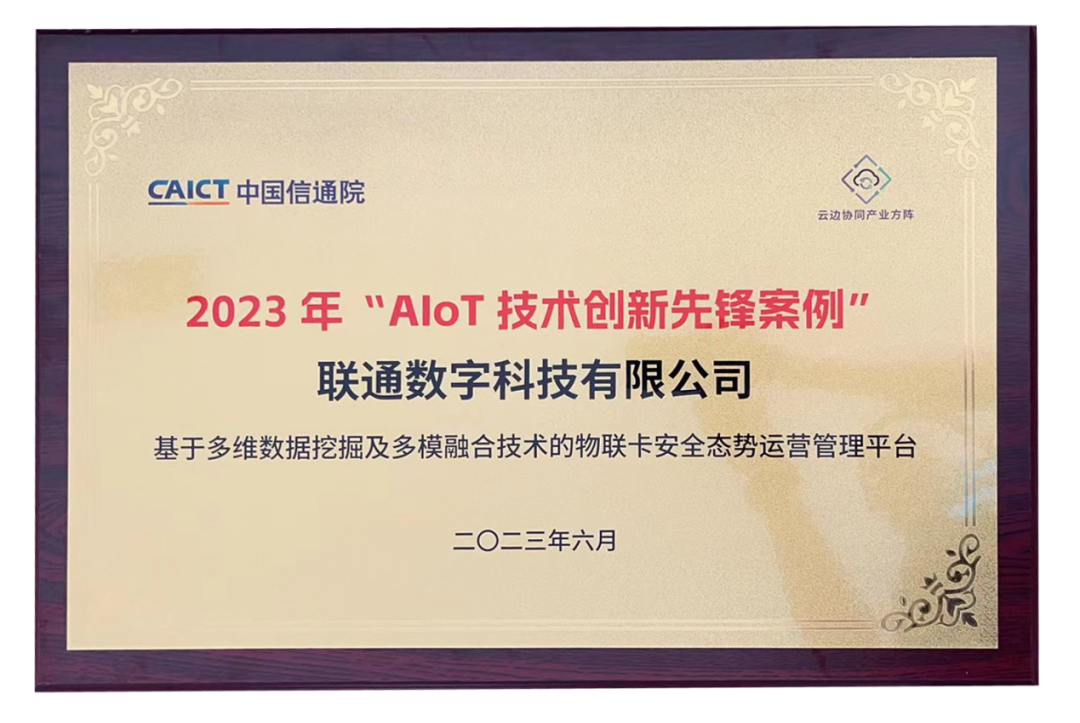 联通数字科技有限公司申报的“基于多维数据挖掘及多模融合技术的物联卡安全态势运营管理平台”,荣获2023年“AIoT技术创新先锋案例”。中国联通通过构建一套基于多维数据挖掘及多模融合技术的安全监测系统,实现了物联网卡安全自我管理,改善了物联网卡服务体验;通过一体化运营模式加强客户服务,树立了“物联网安全监测+服务运营”的行业创新应用典范。该项目致力于解决物联网卡安全监测领域的痛点,助力解决物联网卡安全运营服务中存在的卡安全关联分析等重要技术亟需升级的问题,最终实现物联网卡安全数字化转型核心技术能力上的前瞻布局。