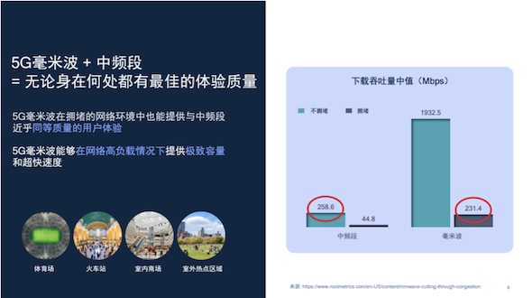 “5G毫米波与Sub-6GHz的强强联合,将让用户无论身在何处都有最佳的体验质量。”Philippe Poggianti分享的一份报告显示,5G毫米波即便是在拥堵的状态下,也能提供与中频段近乎同等质量的用户体验。