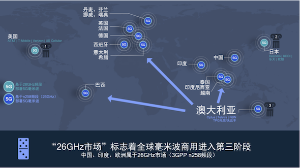 目前来看,毫米波这项“超能力”的“能量模块”已经基本就绪,全球正在迎来第三轮的毫米波商业化潮,通过上文不难发现,欧洲运营商多采用了26GHz频段,该频段同样被澳洲、拉美、东南亚及印度地区所选用。