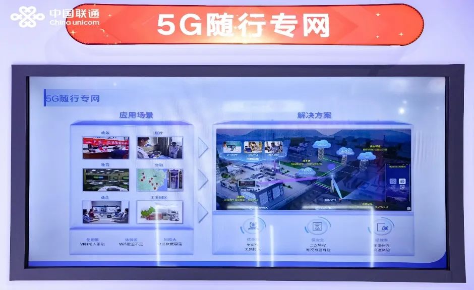 中国联通5G随行专网解决方案基于华为提供的5G核心网toB一朵云实现用户数据的智能分流,为用户提供一个不换卡不换号即可随需直达的畅行专网,帮助用户随时随地、安全、便捷地接入企业内网,提升办公生产效率。相比传统VPN,随行专网具有三个特点:第一,体验优,内网访问免绕行,网络下行速率提升可达10倍以上;第二,连接易,公专双域免登陆,实现互联网和企业内网的无缝切换;第三,高可靠,5G直连降风险,更安全。