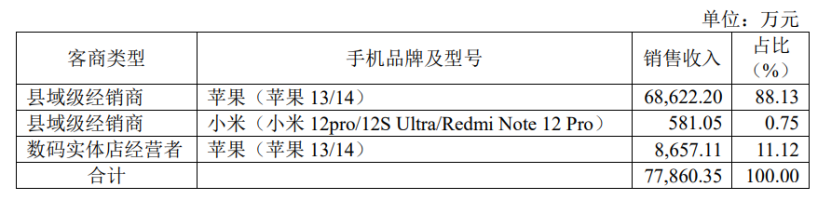 2022年贵广网络向县域级经销商或数码实体店经营者销售手机产品情况如下: