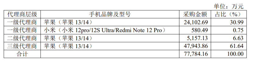 国内手机厂商主要采用经销商模式管理手机销售渠道,除全国代理商外,一般下设一二三级授权代理商。贵广网络成为一级授权代理商前,无法直接向手机厂商或其全国代理商采购手机。2022年手机供应商中,北京迪信通商贸有限公司、广东汇通达网络科技有限公司是多品牌手机一级代理授权商,其余供应商为各品牌手机二、三级代理商。