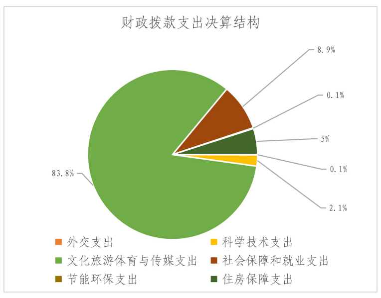2022年度财政拨款支出年初预算为312695.19万元,支出决算为349702.3万元,其中,科学技术支出7417.6万元,占2.1%;文化旅游体育与传媒支出293138.66万元,占83.8%。