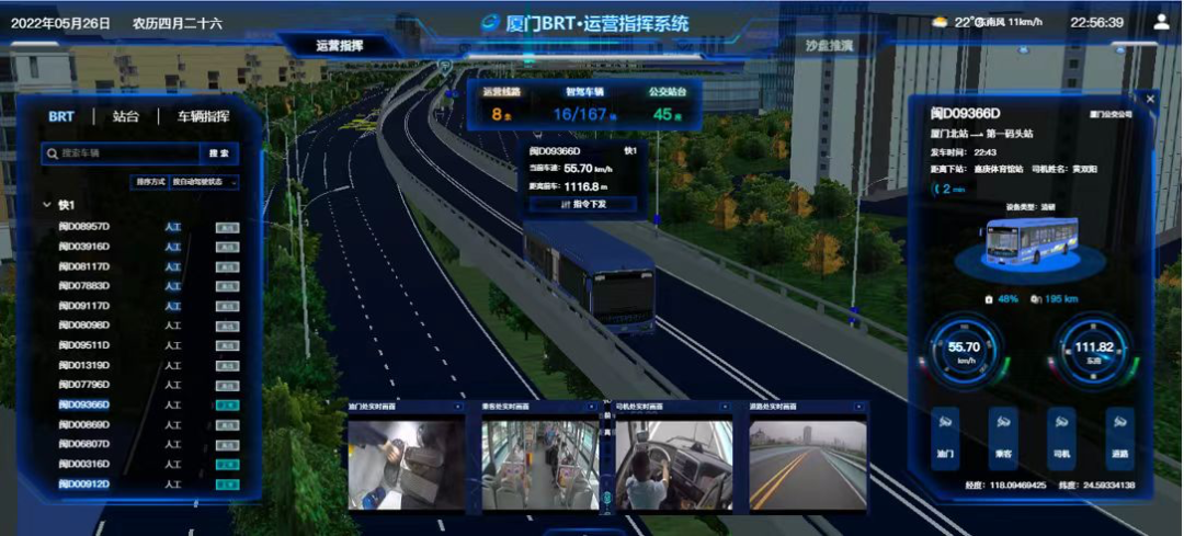在BRT高架桥专用道上,“5G﹢人机共驾”模式为车辆提供亚米级乃至厘米级的BRT车辆定位信息,在遏制危险驾驶、斑马线礼让等方面做到“高级辅助驾驶”主动干预,实现车速稳定、零超速、能耗下降、事故率降低等,成为全国首个城市交通5G﹢BRT高精度大规模商用项目。截至目前,已在全市150台BRT车辆及部分常规公交车上应用,切实改善了传统公交调度管理模式,使BRT快速公交驾驶及运营更为安全、高效、智能。