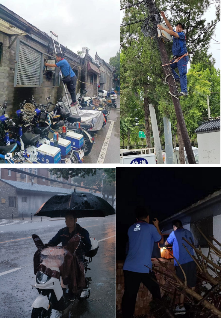 北京联通智家工程师在这场与自然灾害的对抗中逆行而上、抢险救灾的身影,尽显通信人的担当。