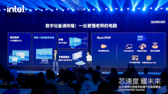 例如,英特尔的酷睿处理除了为希沃在实现智慧课堂的过程中提供性能支撑外,英特尔OPS也被广发应用在教育大屏上,为了把相关特性更好的发挥出来,还提供了非常多的工具包给OEM伙伴,希沃也基于此打造出非常多的工具,助力教育信息化的发展。同时,希沃的首款数字化教学终端为了满足远程教学需求,基于英特尔OpenVINO,双方团队共同开发打造一系列的算法,比如说美颜、背景模糊、人像集中,并能够在每堂课后及时看到反馈,了解教学效果。