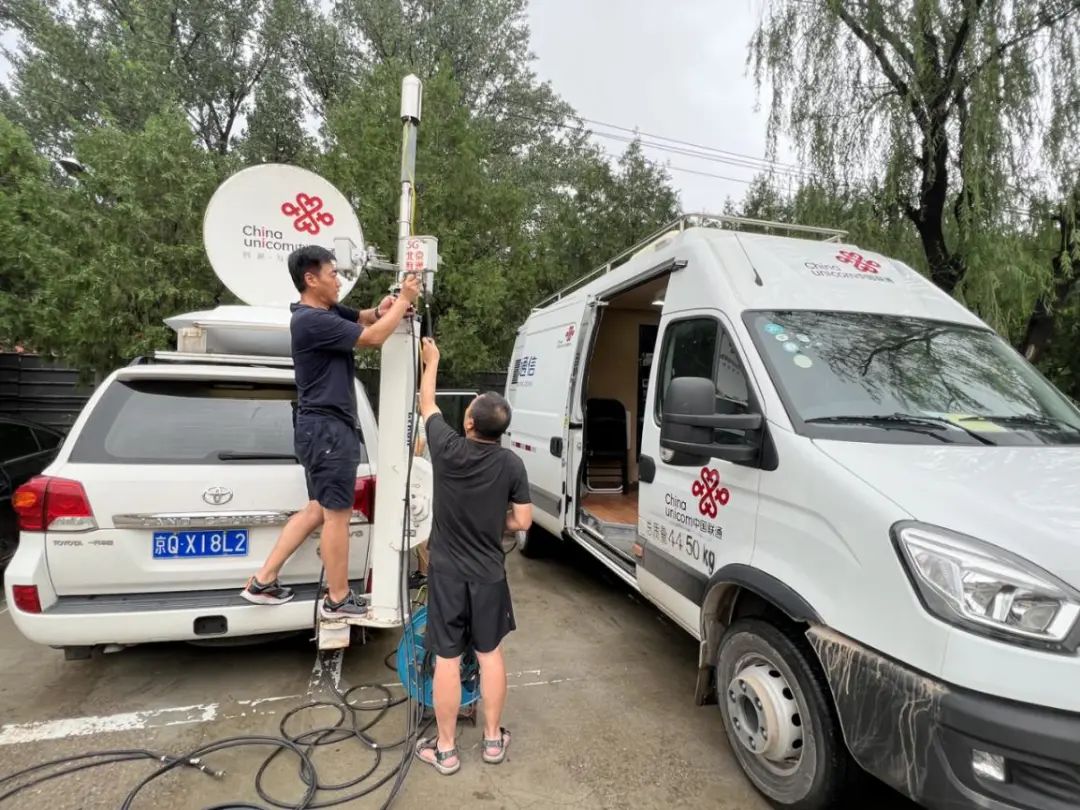8月1日,北京联通紧急出动小型卫星应急基站车深入房山河北镇、门头沟妙峰山镇等地区,为当地抢险救灾工作提供通信支撑,为救灾一线架起了通信桥梁。8月2日,北京联通在昌平区高崖口村、瓦窑村分别开通卫星基站车,为当地受灾地区、居民安置点提供联通信号,恢复当地通信能力。因大部分受灾区域群众手机普遍断电关机,联通的卫星基站车及100KW发电车就提供了数个多孔插线板,使几百名受灾群众受益,迅速恢复了手机电量。联通应急车如黑夜中的一盏明灯,周边群众不断向车辆集结,倍感温暖。