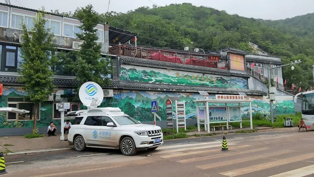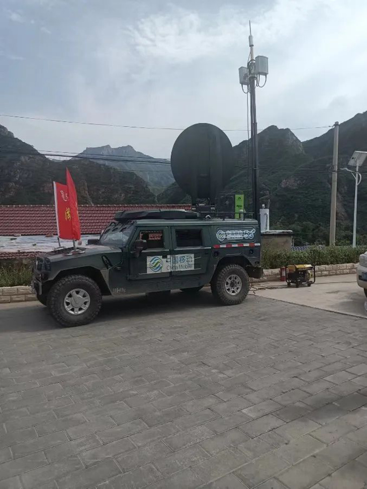 8月2日上午7点半,北京移动“机动化部队”,多用途越野卫星应急车开通,妙峰山镇信号恢复。