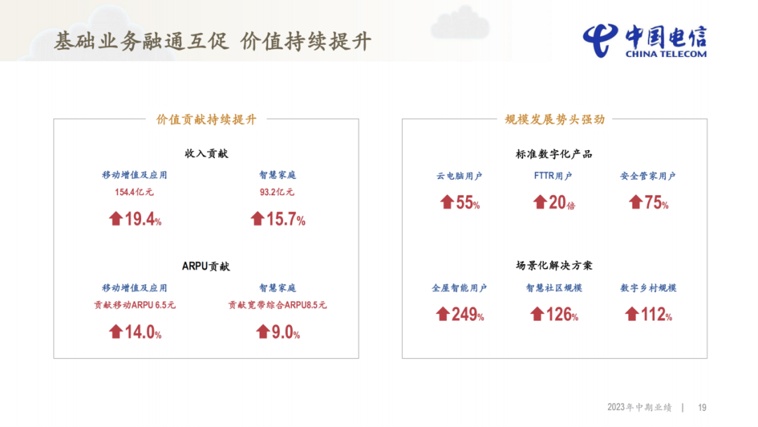 无可争议的是,以天翼云、人工智能为代表的始终保持高速增长的产业数字化业务是业界关注的焦点,因此大家往往会忽视以移动通信服务、固网智家为代表的基础业务。