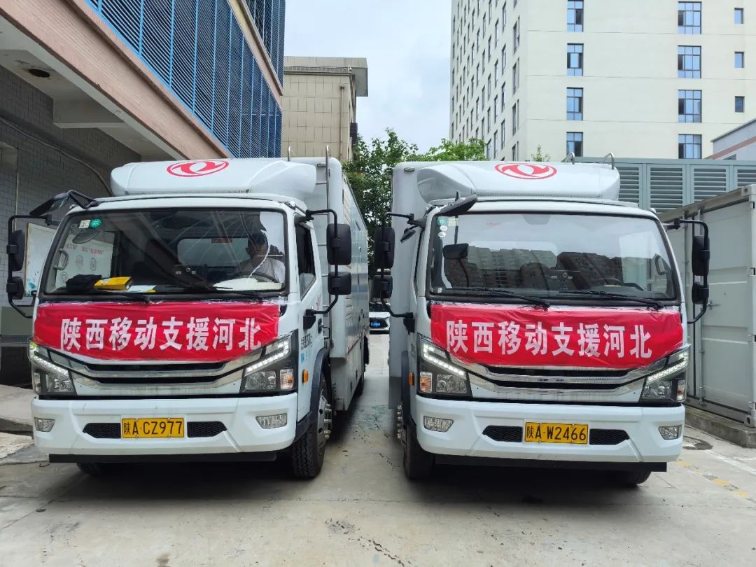 8月7日前后,陕西移动调度3辆120KW应急发电车、5台鑫远眺卫星设备,组织9人成立第二、第三批驰援突击队分别奔赴河北廊坊市、北京市房山区抢修救灾。经过1200多千米、30余小时的长途跋涉,突击队按时抵达,及时将应急发电车和卫星通讯设备送往目的地,并在当地移动部门的统一指挥下开展抢险救灾工作。