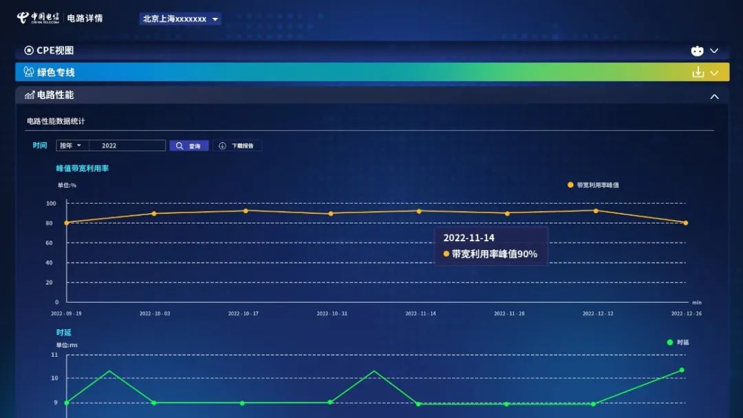 性能检测分析并主动优化:专家服务工程师端到端监控所纳管专线性能数据,包括时延、路由、流量/带宽利用率、可用率情况,并对性能检测结果进行统计监测,如果存在优化可能性则主动优化,时刻保持客户线路状态最优。