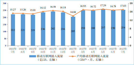 7月份户均移动互联网接入流量达17.03GB 同比增长11.6%