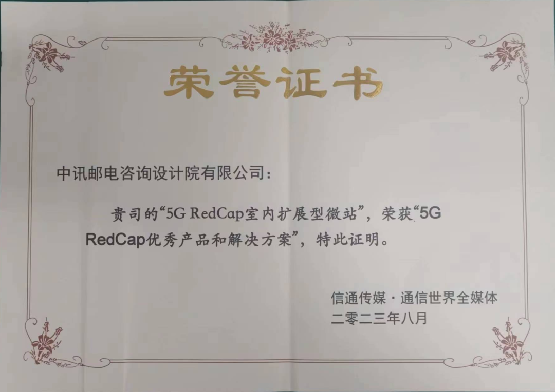 中国联通中讯院5G RedCap室内扩展型微站荣获“5G RedCap优秀产品和解决方案”