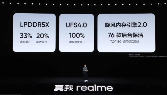 性能方面,真我GT5搭载第二代骁龙8旗舰芯+LPDDR5X+UFS4.0 旗舰规格三件套,并带来至高24GB+1TB的满级内存组合,再加上行业独此一家的240W满级秒充,提供行业领先性能。