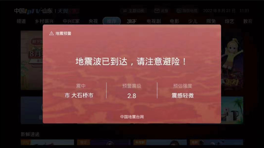 当有突发事件时(台风),云上用户可通过跑马灯方式从TV屏获取到最新的实时信息。对于特别紧急的情况(地震),云化IPTV系统将以弹窗方式向用户告警。