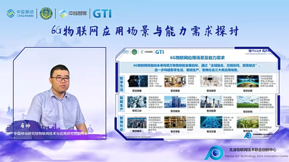 中国移动研究院物联网技术与应用研究所副所长马帅主持本次会议,并发表《6G物联网应用场景与能力需求探讨》的主题演讲,指出6G物联网聚焦与感知、计算、智能、控制等能力融合,具备泛在感知、卓越算力、智慧内生、多元交互等特点,通过“全域连接、多能融合”,满足各类应用差异化需求,加速推动由“万物互联”向“万物智联”的跃迁。