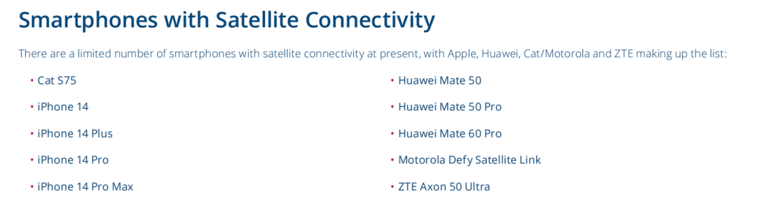 不过,值得注意的是,目前市场上支持卫星直连手机的机型并不多,包括苹果、华为、摩托罗拉和中兴通讯等手机厂商已经推出了兼容手机产品。