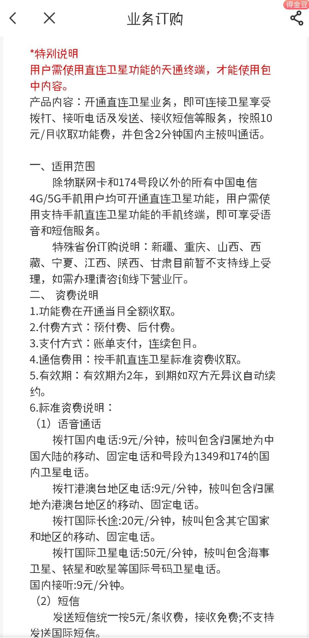 中国电信“手机直连卫星”服务上线:10元/月,不订购语音包9元/分钟