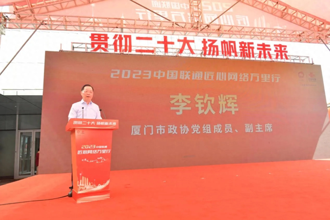 9月9日,以“贯彻二十大,扬帆新未来”为主题的2023中国联通匠心网络万里行活动在福建厦门正式拉开帷幕,中国联通副总经理唐永博出席致辞并为车队代表授予旗帜,厦门市政协副主席李钦辉出席并致辞,福建联通总经理周立松、福建省通信管理局一级巡视员洪晓旻、厦门市工信局局长周桂良、中国联通云网运营中心副总经理邢志超、福建联通副总经理杨暐,以及各级党政机关、合作伙伴等百余嘉宾出席启动仪式。配备中国联通最尖端通信保障装备的通信保障车队,将从数字中国的思想源头和实践起点福建出发,途经闽、浙、沪三地8城,开启一场彰显央企担当、展现创新实力、弘扬红色精神的万里之旅。