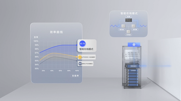 UPS5000H“智能在线”模式支持全模式0ms切换和全负载范围高效,能够解决谐波大、输入浪涌电压干扰的问题,实现超高效率不间断供电,保障业务能够安全稳定运行。