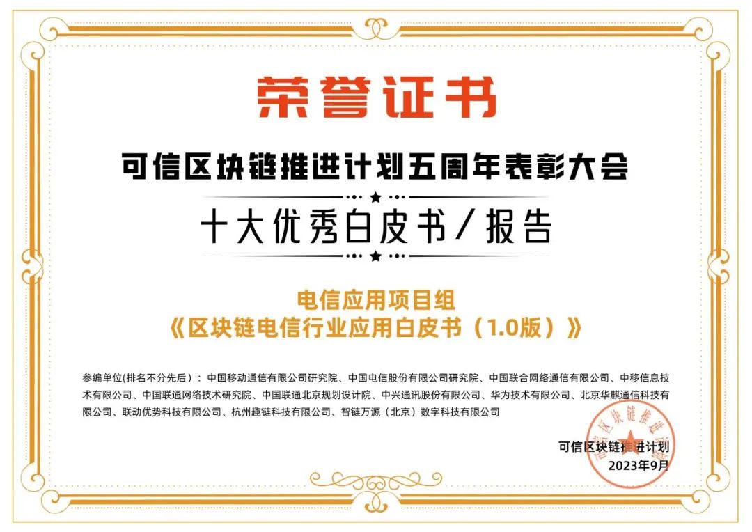 此外,会上对五年来为我国区块链生态发展做出突出贡献的突出成果和优秀单位进行表彰。中国移动研究院牵头完成并发布的两项成果《区块链溯源应用指南》《区块链电信行业应用白皮书(1.0版)》均入选“TBI五周年十大优秀白皮书/报告”;因贡献突出,中国移动研究院被授予“TBI五周年杰出贡献单位”称号。