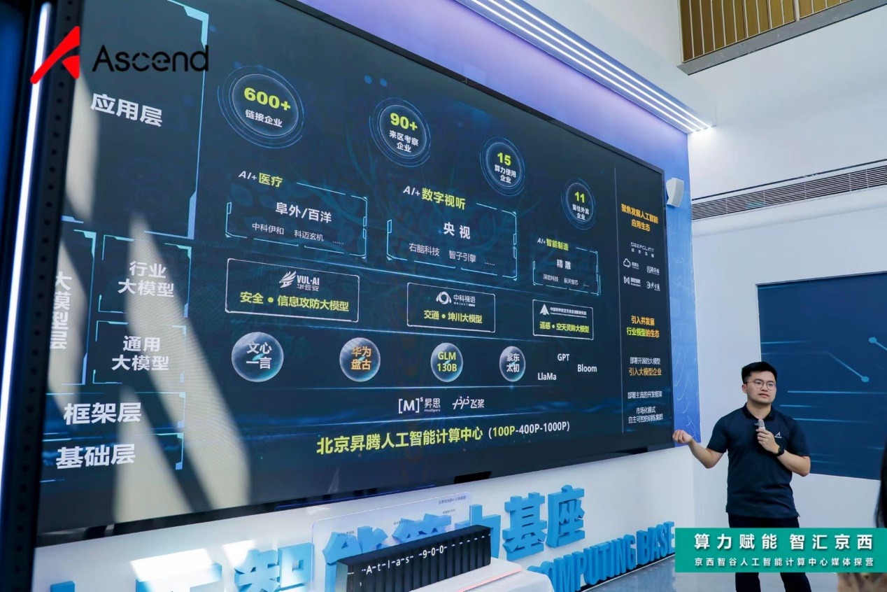 北京昇腾人工智能生态创新中心CTO杨光告诉记者,“京西智谷”已建成并上线AI算力规模100P,2023年预计将进一步增至400P,并将继续扩容到1000P,打造超强算力底座。目前“京西智谷”正在面向企业提供AI大模型的训练、应用服务,已适配并提供ChatGLM-6B、华为开源盘古等多个开源大模型,涉及自然语言处理、计算机视觉等多个领域。医渡云、格灵深瞳等60多家AI企业正在利用“京西智谷”的基础设施孵化大模型,覆盖数字视听、智能医疗、智能制造、智慧交通、智能金融等多个行业场景。