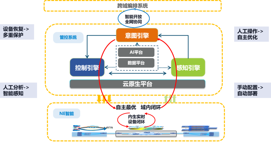 光网络的发展历程从最初的WDM,到OTN-ODUk,再到VC-OTN,fgOTN,其角色已经从单纯的提供管道转变为直接面向客户提供可订购的业务。网络覆盖也从骨干延伸至接入,承载的业务种类亦更加丰富。同时,业务流向也从静态点到点向动态多点到多点转变。然而,面对这样的变革,传统OTN网络面临运营效率低下、业务配置复杂度高等问题,亟需向智能化OTN网络升级。