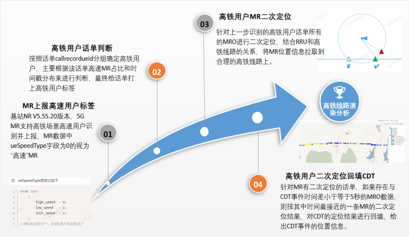 从组网结构来看,终端随列车高速移动,用户行为具有高度一致性。从覆盖场景来看,高铁场景下信道条件变化剧烈,受多普勒频移影响,列车高速运动会导致接收端接收信号频率发生变化,覆盖稳定性也会比大网用户低。由于高铁的特殊场景,导致通过常规DT测试来持续评估网络覆盖和用户感知,处理投诉、复现故障等代价变得极为高昂,且效率低下。而NGI能够智能识别高速用户,并基于高速用户的呼叫记录id进行二次定位,完善用户数据信息采集;通过超级小区CP合理分布,实现隧道内栅格正常渲染,解决用户进入隧道定位问题。