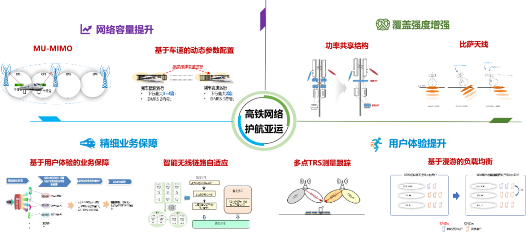 针对国庆黄金周期间高铁用户多、网络容量不足、列车穿损大的问题,中国移动创新提出灵活的资源配置方案,一方面通过对不同车厢具有空间隔离度的用户进行配对实现时频资源的复用,获得空分复用增益,提升网络容量和频谱效率;另一方面通过对车速的精准识别使网络配置动态适配列车行驶速度,进一步提升用户的解调性能。共享配置策略应用后可实现在高密集业务场景下用户性能提升30%,用户体验速率达到400Mbps以上,让旅客享受到便捷高速的通信体验。