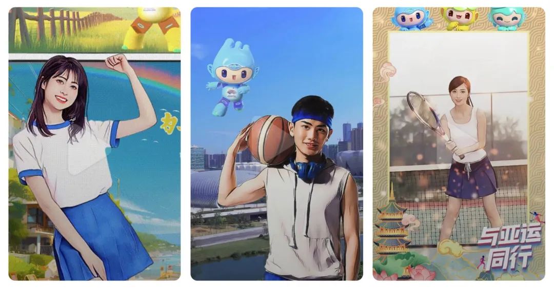 云游杭州著名景点、畅游亚运场馆、穿越时空逐梦亚运赛场……双节期间,多样的亚运专属AI视频彩铃模板,让许多用户解锁了假期看亚运新姿势,无论身在何处,只需一键更换背景,即可跟随数字人感受亚运盛会的浓厚氛围。另一种更沉浸的定制化玩法,则支持用户上传照片制作自己的专属“数字分身”,化身运动员、志愿者等,以第一视角亲临赛场,为更多用户带来焕然一新的亚运体验。