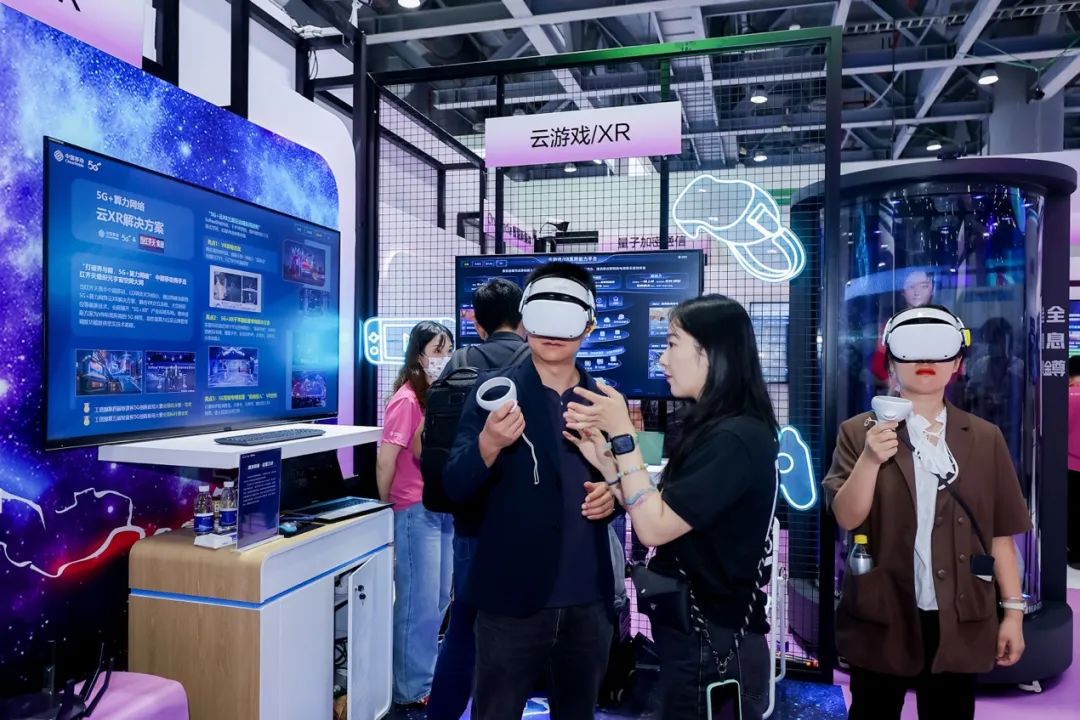 在5G赋能千行百业展区,按照“支撑治理方式数智转型”、“赋能生产方式数智变革”和“加速生活方式数智升级”三个版块,集中展示了中国移动在数字政府、乡村振兴、智慧电力、5G+工业互联网、车联网、智慧金融、智慧教育、智慧文旅、云游戏等领域的最新成果和标杆案例。