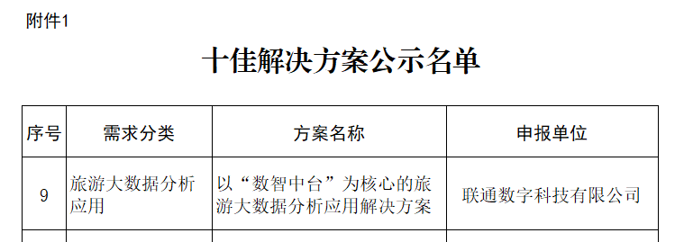 图2-文旅部智慧旅游“上云用数赋智”十佳解决方案(联通文旅入选项目)