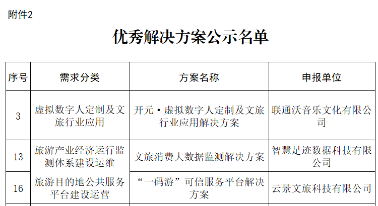 图1-文旅部智慧旅游“上云用数赋智”解决方案公示
