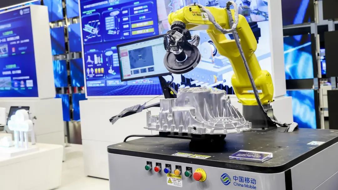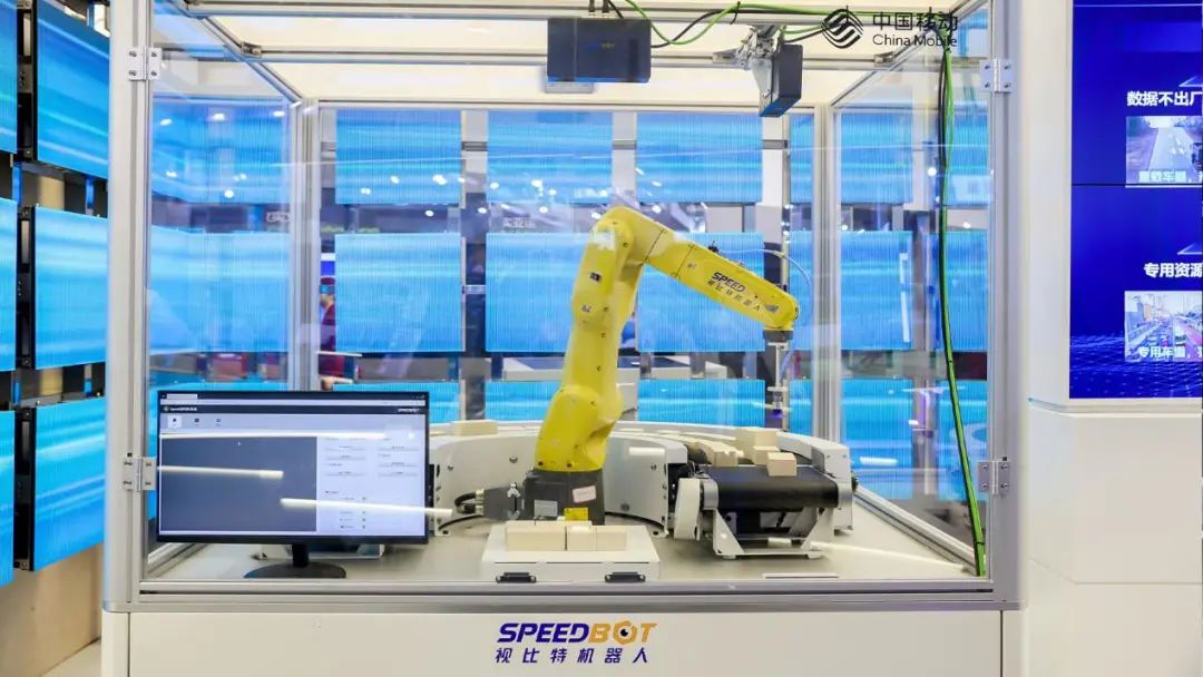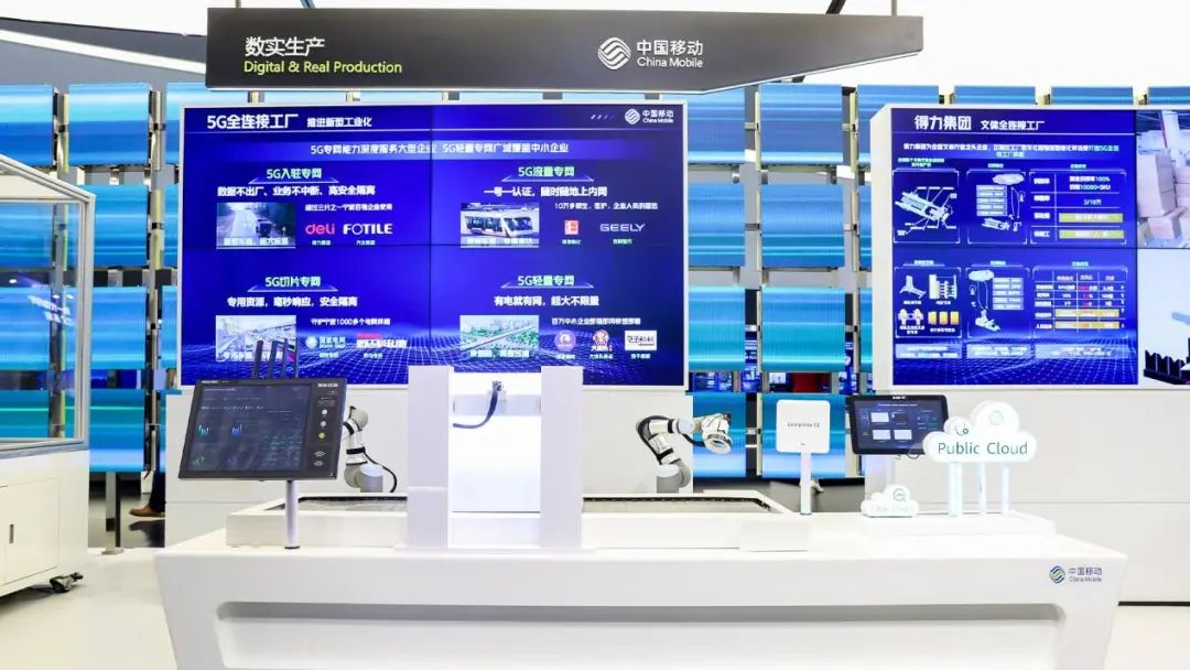 在“数实生产”展台,宁波移动将生产一线的智能拆码垛工作站、移动式机器视觉质检设备、机器视觉产线三个“大家伙”搬到了展会现场,分拣产线实现精准识别率100%,检出缺陷模型准确率98.5%,四个工业摄像头每15秒拍摄高清照片24张并依托5G网络上传......现场复刻了全连接工厂里的智慧物流等生产场景,智能质检、MES看板等业务场景。