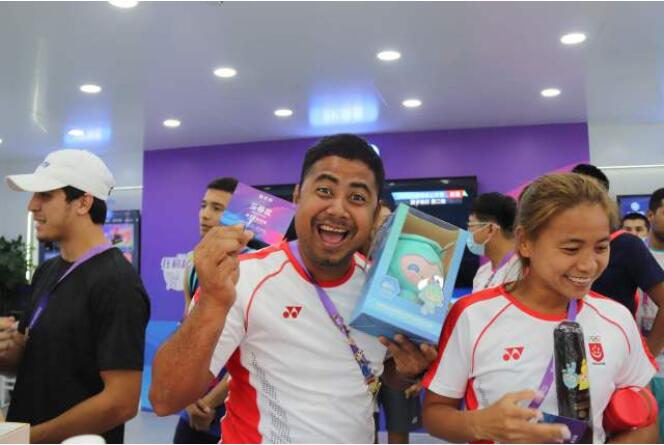 位于亚运村内运动员餐厅门口的“智能亚运体验空间”又是另一番热闹景象,智能体验、打卡抽奖、笑脸留言等一系列活动吸引了各个国家和地区的运动员、代表团成员,展厅应接不暇,最火爆的一次,体验队伍从展厅里排到了展厅外,足有二十几米长。