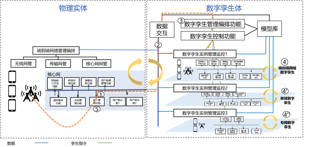 “三体四层五面”6G总体架构中物理实体与数字孪生体交互示意图