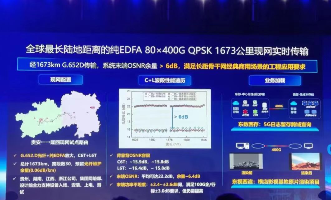 其中,400G是开启骨干网下一个周期的重大变革性代际技术,是算力网络时代的“承重墙”。2023年,中国移动发布世界最长距离400G光传输现网技术试验网络,召开3次重大技术进展发布会推进实现400G长距传输3大世界纪录,联合国内产业从无到有基本构建了涵盖芯片、器件、模块、设备、系统的自主可控产业链,有力推进了400G QPSK技术和产业成熟。当前,中国移动省际骨干传送网400G OTN新技术试验网设备集采已经完成,400G全光省际骨干网建设开工在即,将加速400G系统全面商用落地。