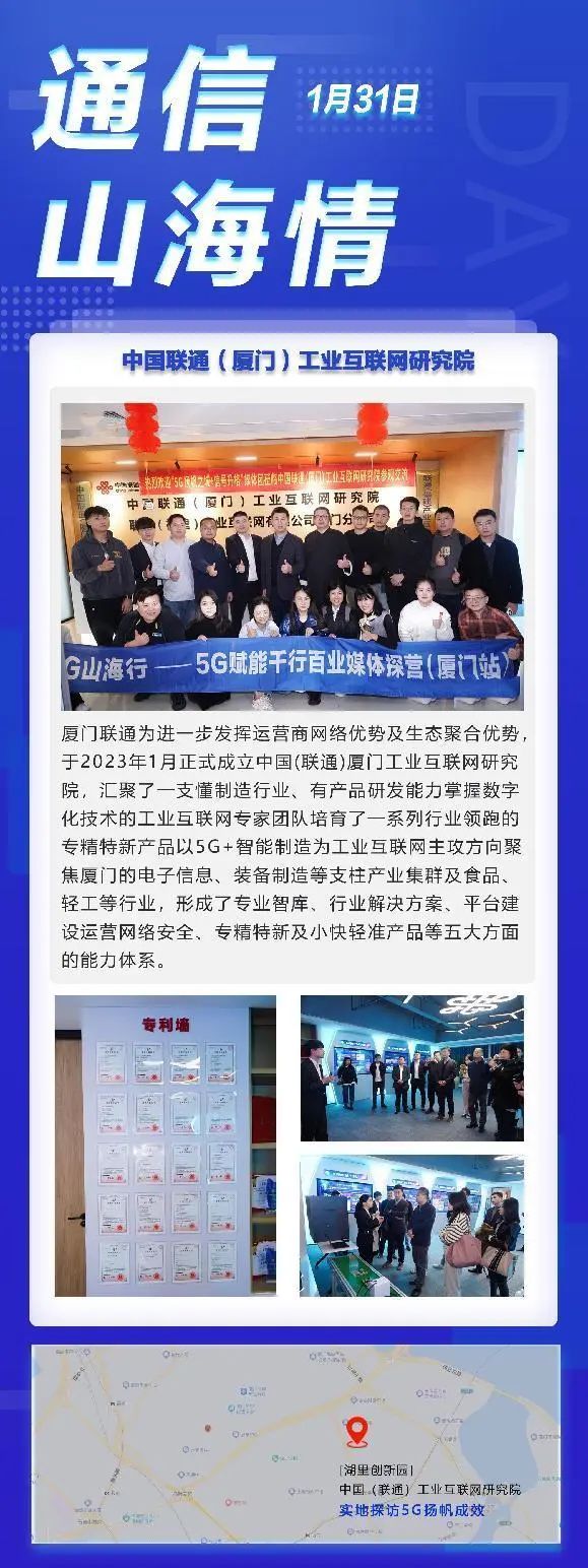 厦门联通为进一步发挥运营商网络优势及生态聚合优势,于2023年1月正式成立中国(联通)厦门工业互联网研究院,依托5G+工业互联网,汇聚了一支懂制造行业、有产品研发能力、掌握数字化技术的工业互联网专家团队,培育了一系列行业领跑的专精特新产品,围绕厦门市“4+4+6”现代化产业体系,以5G+智能制造为工业互联网主攻方向,聚焦厦门的电子信息、装备制造等支柱产业集群及食品、轻工等行业,形成了专业智库、行业解决方案、平台建设运营、网络安全、专精特新及小快轻准产品等五大方面的能力体系。