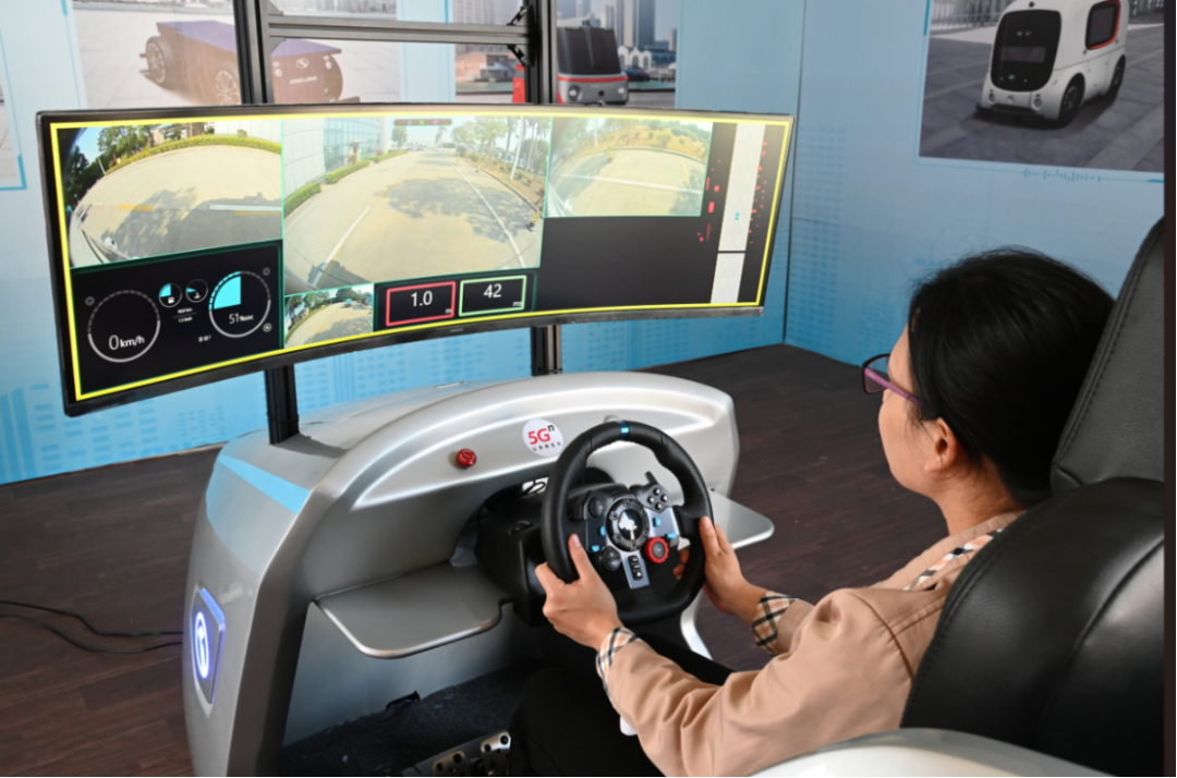 (驾驶员在5G驾驶舱远程操控园区车辆行驶)