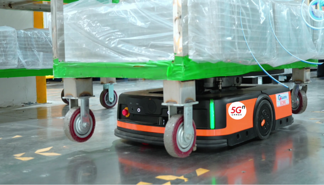 (AGV小车在厂区内进行自动配送)