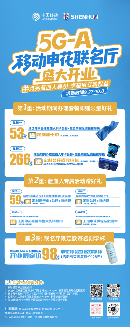 全国首家移动申花联名厅盛大开业――科技+体育“破圈”登场,国庆流量新王炸