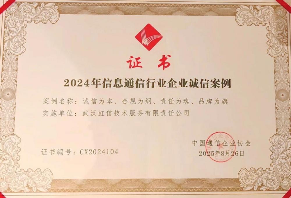 此次获评“信息通信行业企业诚信案例”,既是对虹服公司坚守“诚信立业”战略根基的充分肯定,更是对其构建的 “技术可信、行为可靠、价值可期”三位一体企业诚信建设模式的高度认可,进一步彰显了虹服公司作为行业诚信标杆的品牌形象。