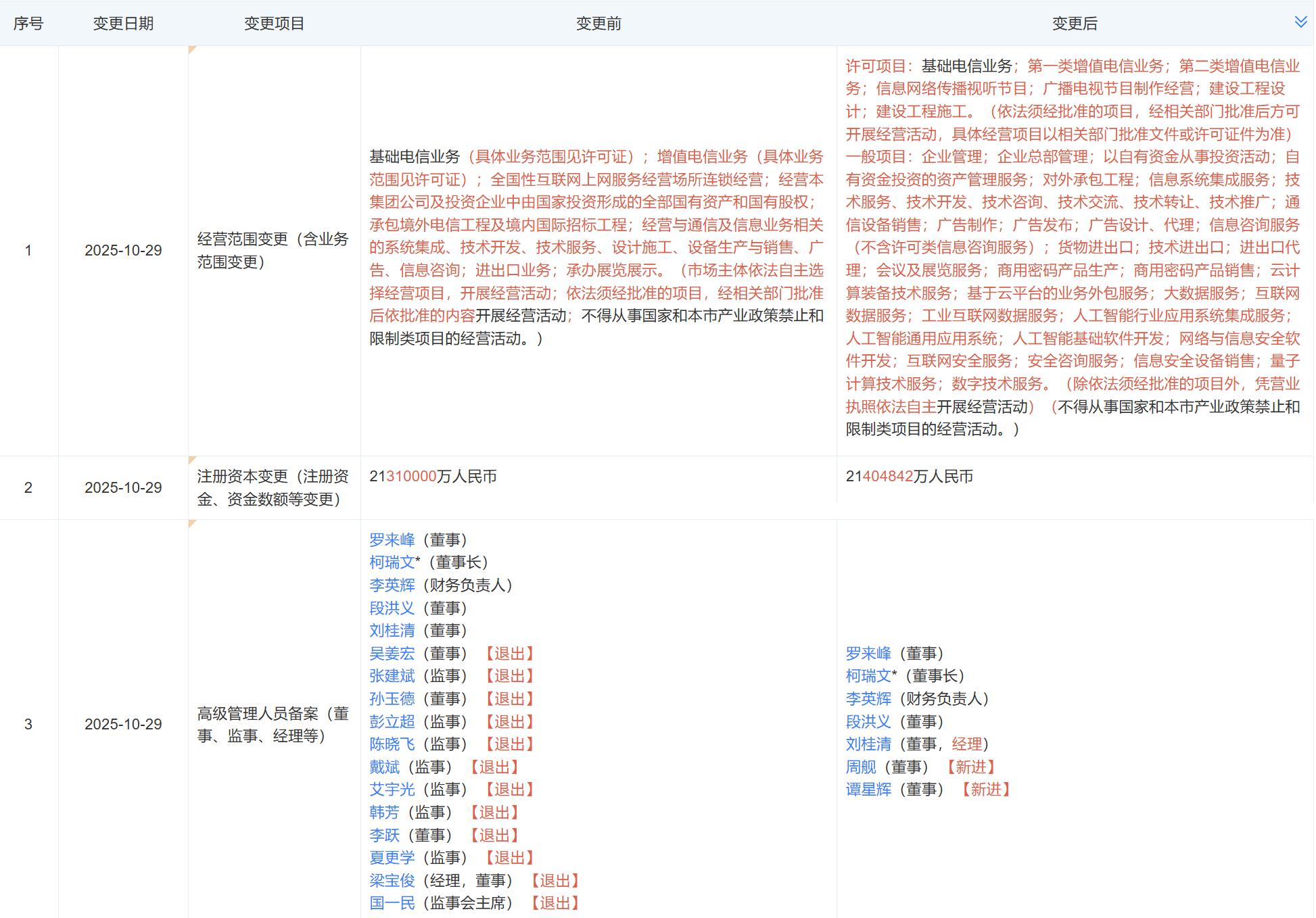 中国电信集团完成重要工商变更 涉及资本、业务与管理层